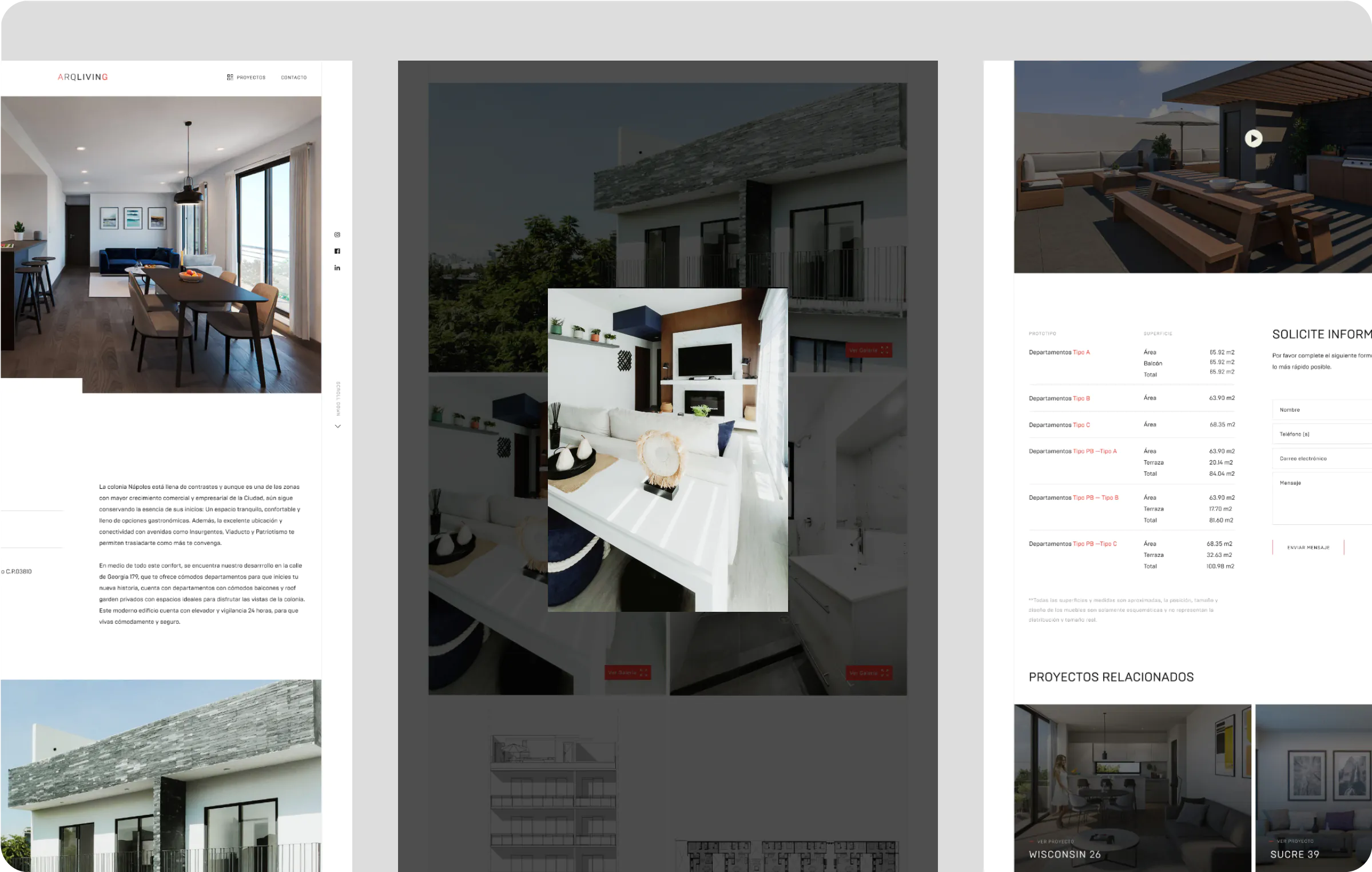 Nuestro equipo de diseñadores creó distintas propuestas para el sitio web de Arqliving. Esto nos permitió reorganizar la estructura de la información para una navegación más fluida. Los proyectos se presentan de manera clara, con detalles fácilmente accesibles, permitiendo a los visitantes explorar el portafolio de manera sencilla.