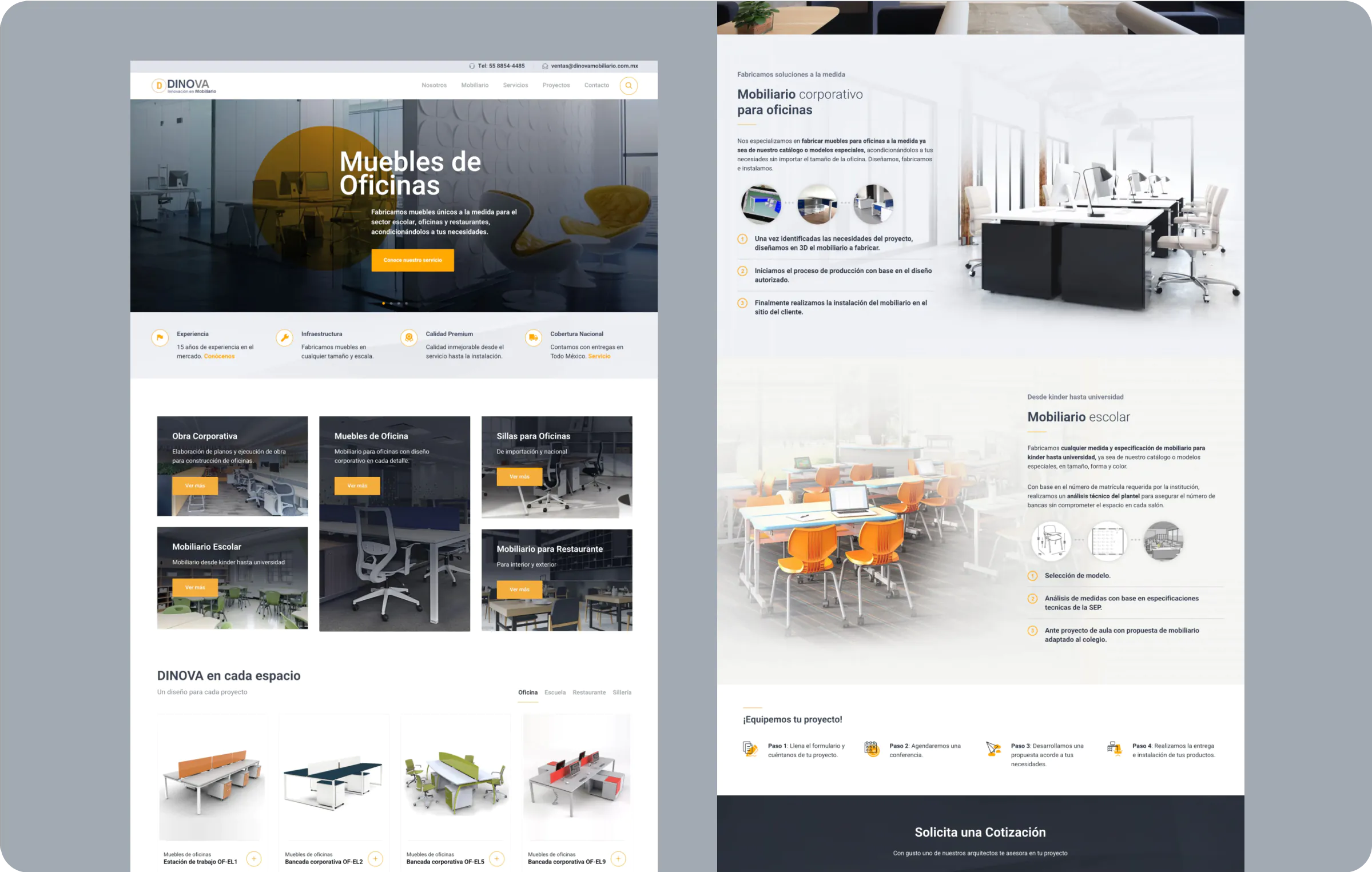 Dinova Mobiliario, con más de 15 años de experiencia en la industria del mobiliario especializado para entornos escolares, oficinas y restaurantes.